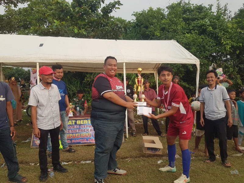 Sebagai penutup acara, panitia dan Dede Sumantri SAB serta H muhi SE menyerahkan piala bergilir serta hadiah kepada tim juara RT 06 disertai penghargaan pemain terbaik yang penampilan gemilang nya di sepanjang turnamen. (Ay)
